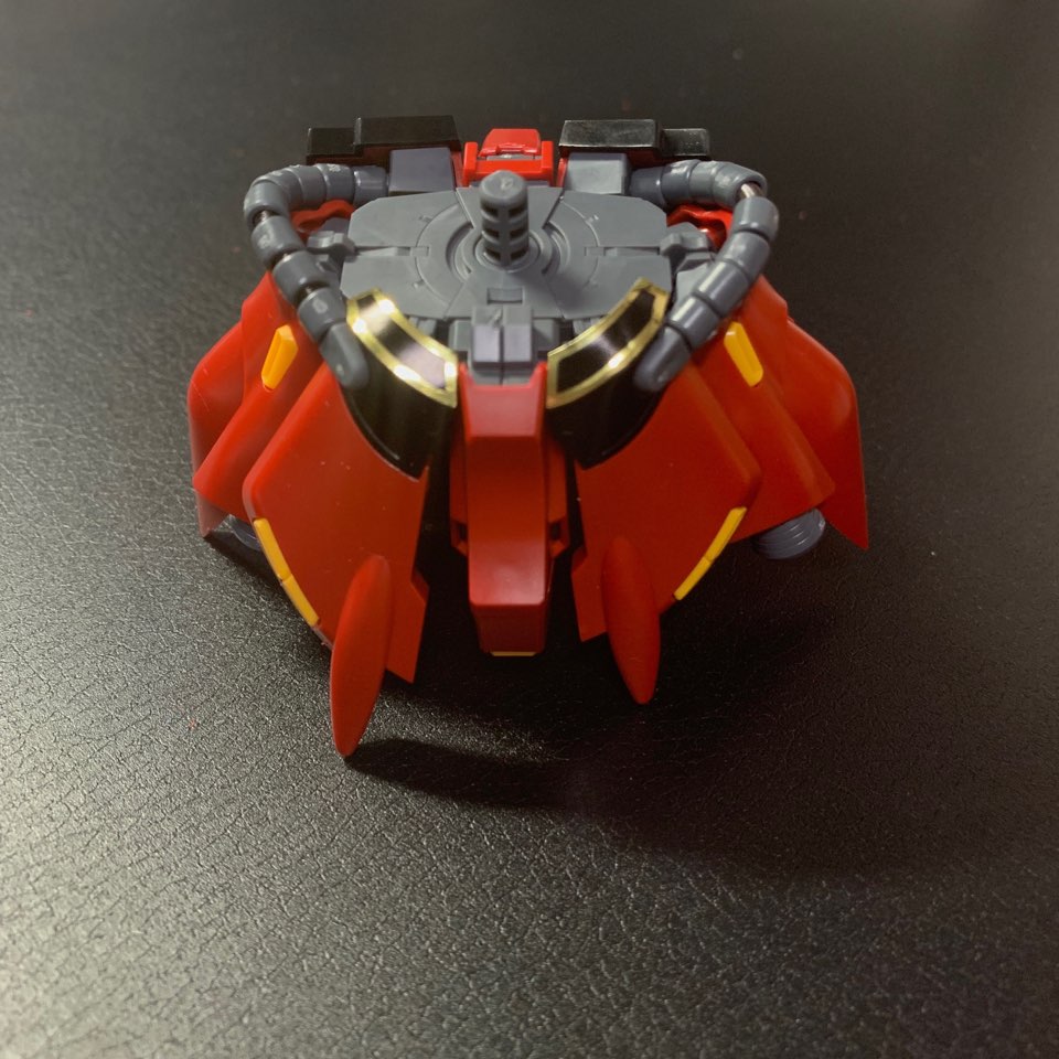 백팩 조립 전 상체와 하체만 결합한 상태.