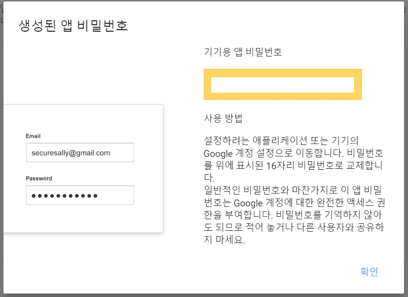 6) 생성이 완료되면 기기용 앱 비밀번호를 부여받는다.