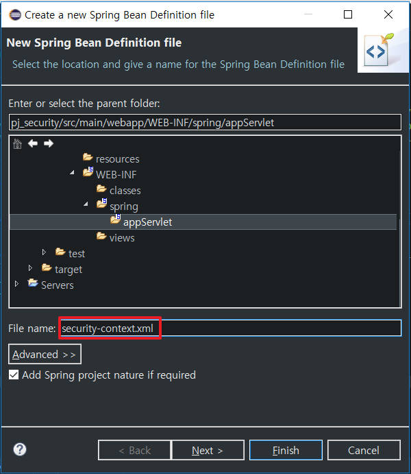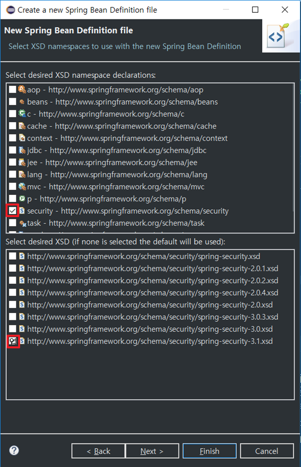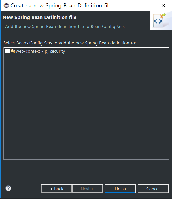 2-4. 스프링 빈 정의를 추가하기 위한 설정인데 finish해도 무관하다.