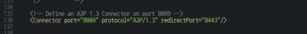 포트 번호는 사용 중인 톰캣의 server.xml에서 AJP 프로토콜 설정이 되어있는 포트 번호를 입력해야 합니다.