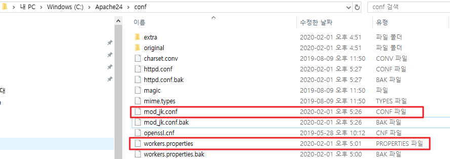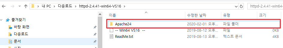httpd.conf 파일은 Apache24 - conf 경로에 있습니다.