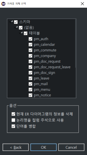 ERD를 그리고자 하는 테이블을 선택하고 OK 하면 ERD가 생성됩니다.