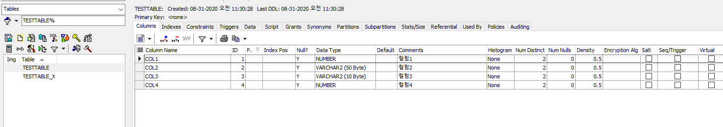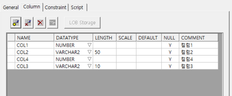 해당 테이블에 컬럼3을 추가한다면 아마 COL4 컬럼 아래에 추가될 것이다.