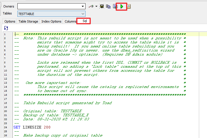 5) Sql 탭으로 이동 - 우측 상단에 ▶ 클릭