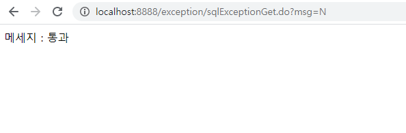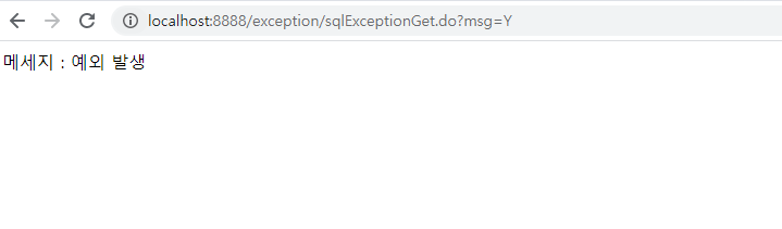 그리고 컨트롤러에서 Y를 입력받을 때 "예외 발생"이라는 메세지를 보내고 예외를 발생시켰다.
