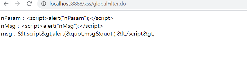 2. '/xss/globalFilter.do' 내의 'n'으로 시작하는 파라미터는 필터링 되지 않는다.(usePrefix=true)