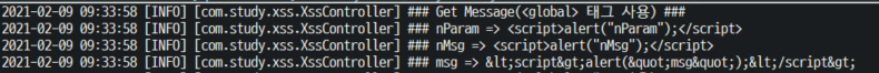 로그를 보면 nParam, n으로 시작하는 nMsg 파라미터는 필터링되지 않았으며 msg 파라미터만 필러링된 것을 확인할 수 있다.