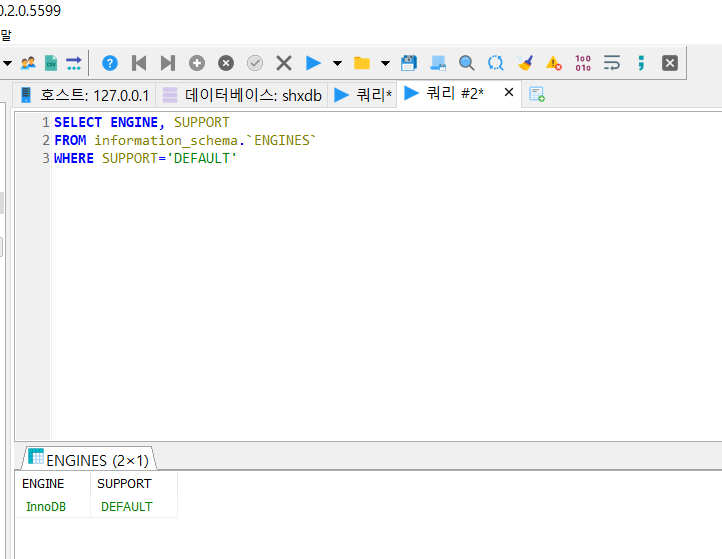 * InnoDB 엔진은 MySQL 5.5 이후 기본적으로 사용되었다고 한다. 만약 엔진이 MyISAM이면 InnoDB로 변환하는 작업이 필요하다.