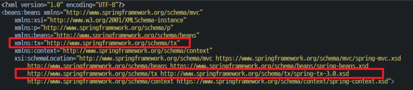 트랜잭션을 위한 태그는 "tx" 라는 네임스페이스를 갖는다.