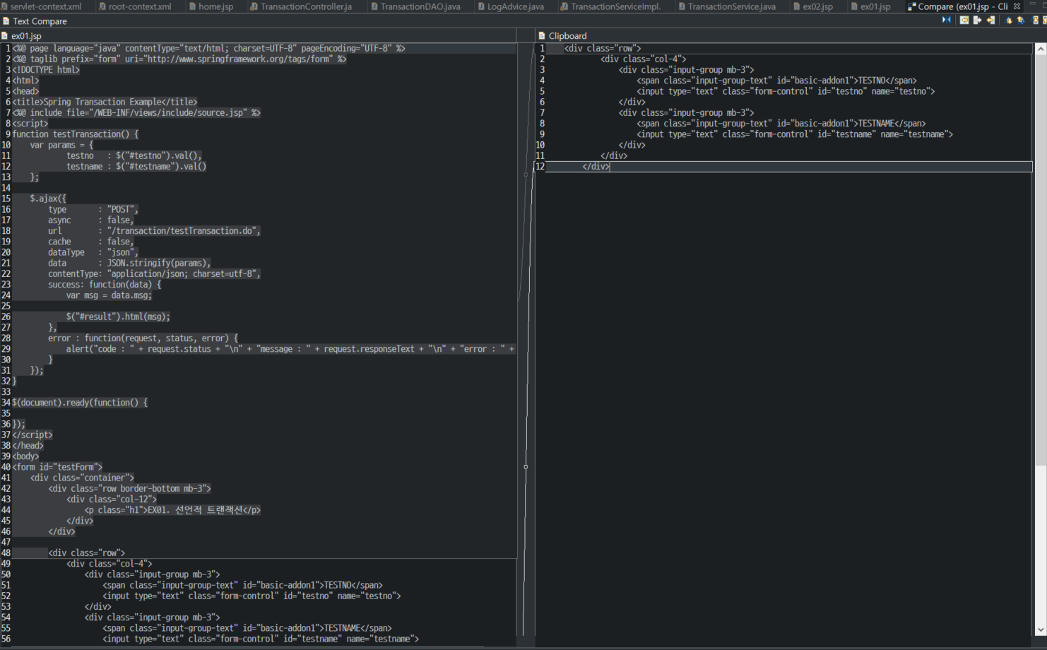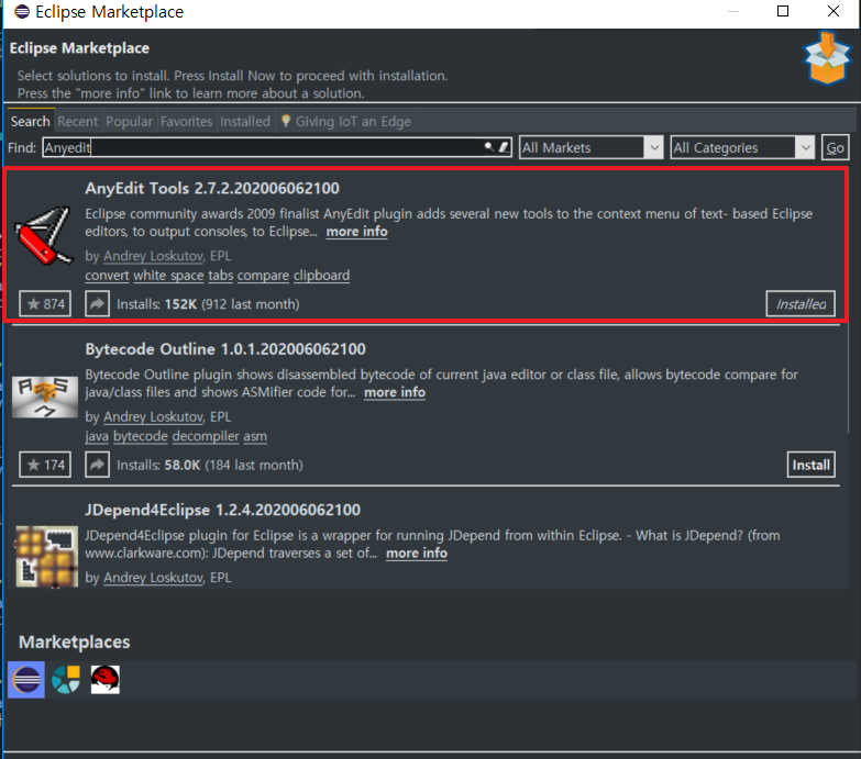 Tip [AnyEdit]파일 저장시 공백 제거, 코드 비교 - 반응형 개발을 하다보면 나도 모르게 생기는 공백들이 있습니다. 커밋을 하기 전에 지운다고 지우긴 하는데 가끔 빠지는 부분이 있더라구요. 이럴 때 꽤 요긴하게 사용이 가능한 툴이 있어 소개시켜드릴까 합니다. *개발 툴은 이클립스입니다. 1) Help - Eclipse Marketplace - Anyedit 설치 2) 설치가 완료되면 Window - Prefrences - General - Editors - AnyEdit Tools 클릭 Remove trailing whitespace 체크를 하면 파일 저장시 공백이 자동으로 제거된다. + 코드 비교하기 기능 이외에도 코드를 비교할 수 있는 기능도 제공한다. 원본 코드를 드래그 후 복사한 다음 비교하고자 하는 코드에서 마우스 우클릭 후 Compare With - Clipboard 클릭 아래와 같이 새로운 창이 생기며 코드를 한 눈에 비교할 수 있다. 참고자료 [Eclipse] AnyEdit 플러그인 설치 방법 [Eclipse] AnyEdit 플러그인 설치 방법 AnyEdit 플러그인 다운로드 : http://andrei.gmxhome.de/anyedit/links.html 자신의 Eclipse 버전에 맞는 프러그인을 받아서 Eclipse 설치 디렉토리 밑의 plugins 란 디렉토.. iamfreeman.tistory.com 반응형 공유하기 게시글 관리 3인칭시점 저작자표시 비영리 변경금지 (새창열림) 'Tip' 카테고리의 다른 글 플레이스토어 앱 심사 거절의 원인 - 개인정보처리방침 (0) 2023.12.29 Tomcat 재시동없이 변경된 Java 소스 적용하기 (0) 2021.04.23 Eclipse Debug Source not found 해결 (0) 2021.01.22 GitHub Pages에 포트폴리오 호스팅하기 - 4) 커스터마이징2 (0) 2021.01.18 GitHub Pages에 포트폴리오 호스팅하기 - 3) 커스터마이징 (0) 2021.01.14 Contents 연관 포스팅 플레이스토어 앱 심사 거절의 원인 - 개인정보처리방침 2023. 12. 29. Tomcat 재시동없이 변경된 Java 소스 적용하기 2021. 4. 23. Eclipse Debug Source not found 해결 2021. 1. 22. GitHub Pages에 포트폴리오 호스팅하기 - 4) 커스터마이징2 2021. 1. 18. 댓글 0 + 이전 댓글 더보기