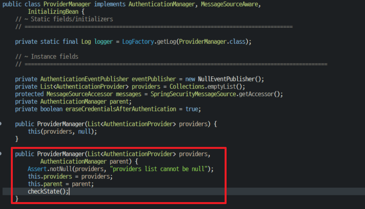 AuthenticationManager는 ProviderManager로 구현되어 있습니다.