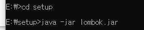 1-3. cmd 실행 후 다운받은 파일의 경로에서 java -jar lombok.jar 명령어 입력