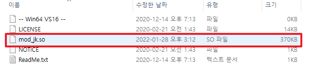 다운받은 mod_jk.so를 apache가 설치된 폴더 - modules 폴더로 옮긴다.