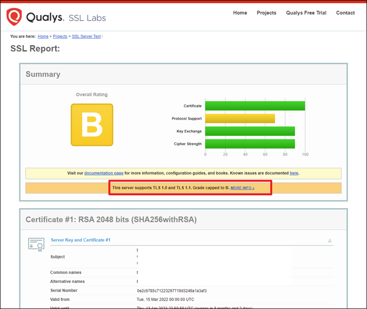 tls1.0, 1.1이 허용된 경우 책정된 등급