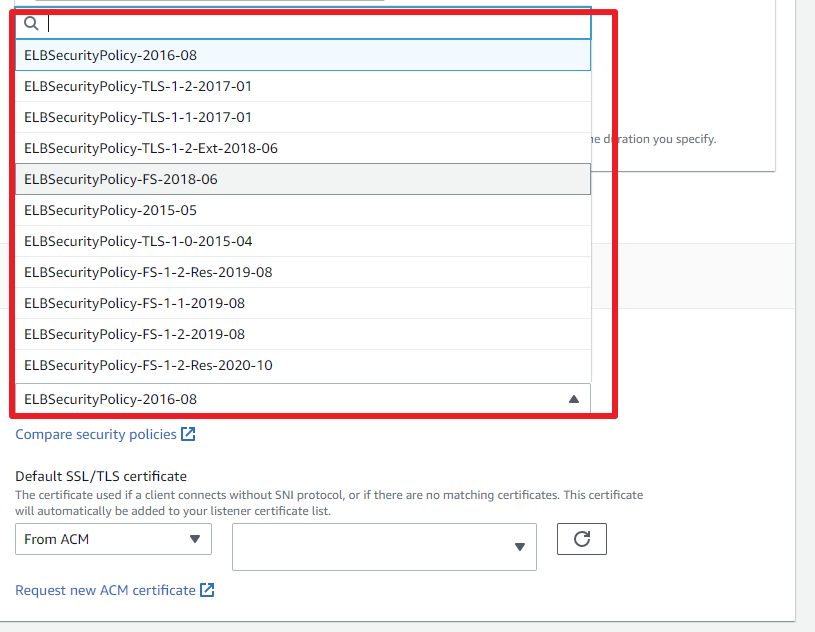 2) Secure listener settings - Security policy 옵션 선택
