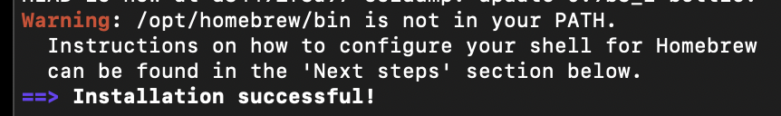 아래 경고 문구는 brew가 PATH에 등록되지 않아서 발생하는 경고입니다.