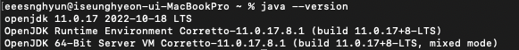 *설치된 자바는 아래 명령어를 통해 확인할 수 있습니다.