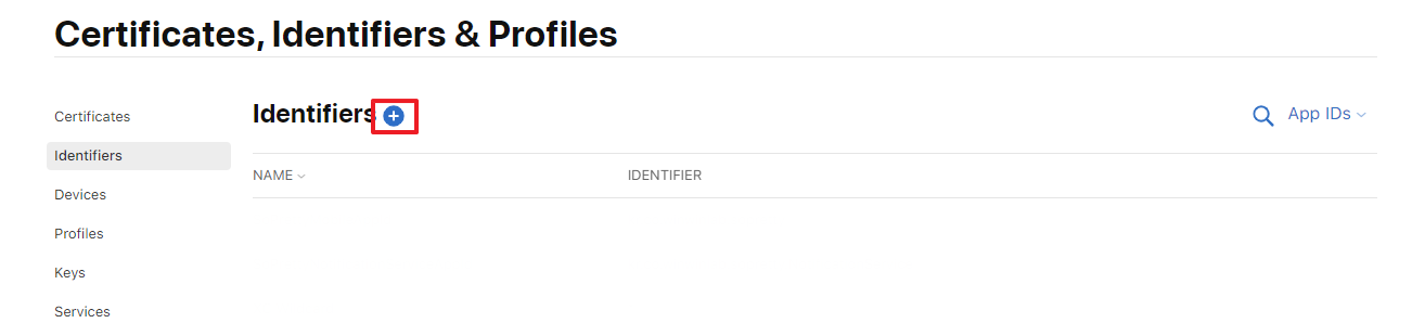 3-1) Identifiers에서 + 버튼을 클릭합니다.