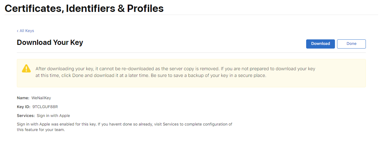 - apple.login.key : 1.1-5) 에서 생성된 키 ID
