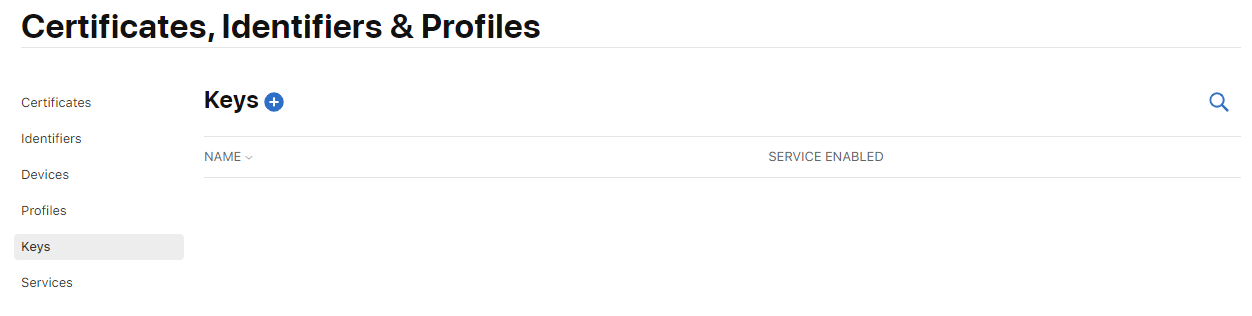 5-1) 다시 메뉴로 돌아와 Keys 메뉴의 + 버튼을 클릭합니다.