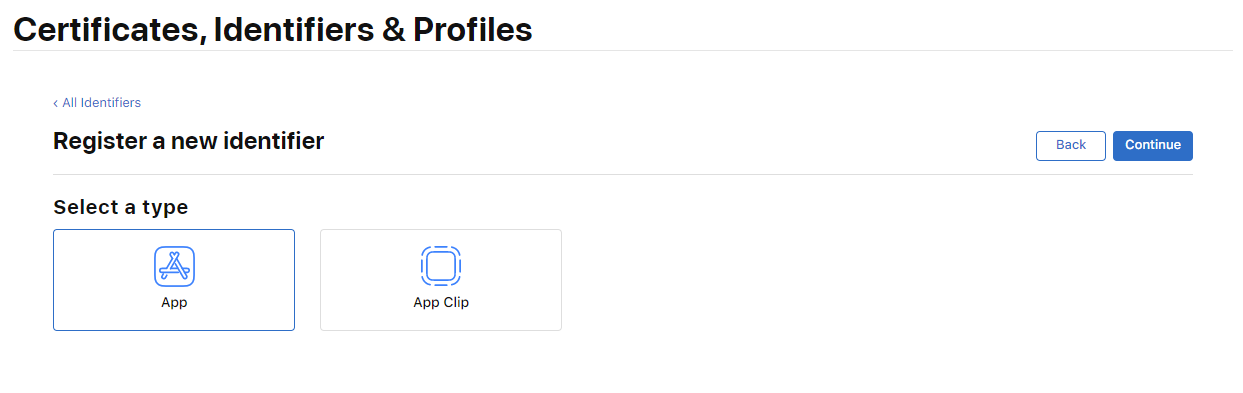 Continue 후에 3)에서 생성한 App ID를 선택합니다.