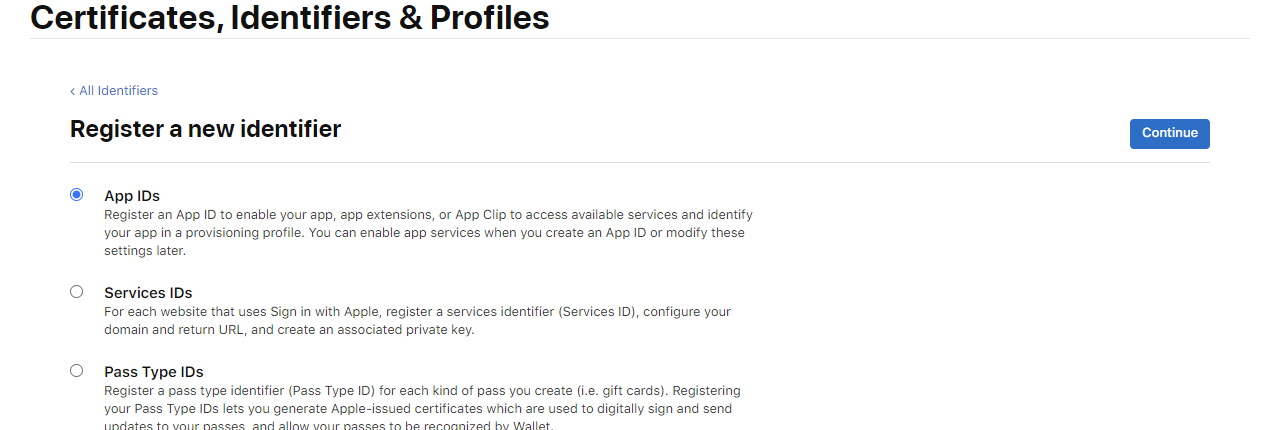 3-2) App IDs 선택후 Continue