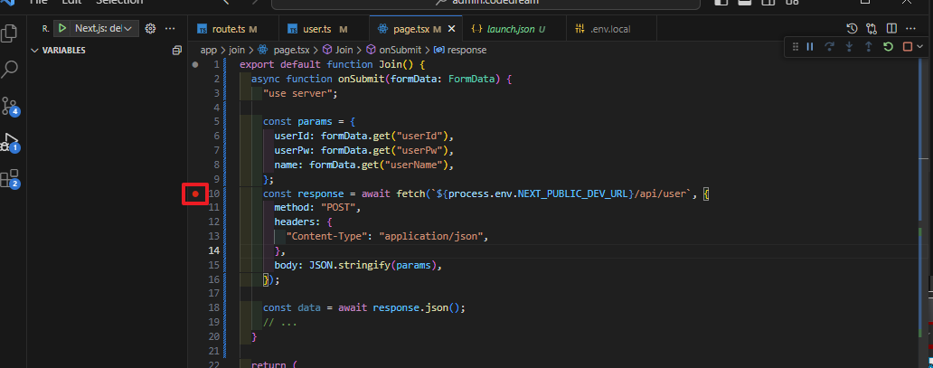 이후에 원하는 곳을 클릭해 브레이크 포인트를 걸어줄 수 있습니다.