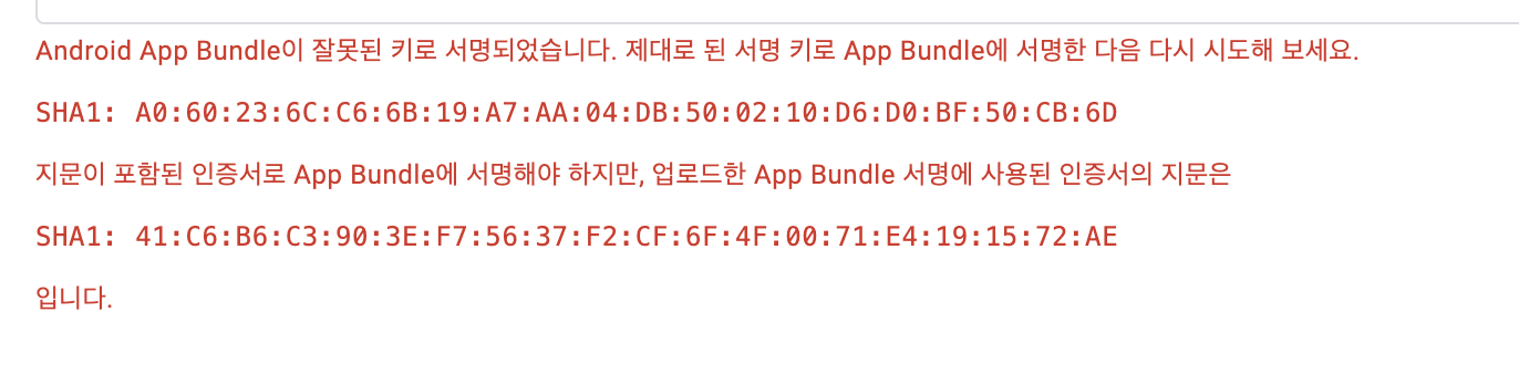 원인은 이전 배포에서의 업로드 키와 새로 추가된 앱 파일의 업로드 키가 달라서인데요. 이 경우에는 구글에 업로드 키를 재설정한다는 요청을 해야 합니다.