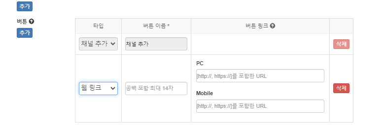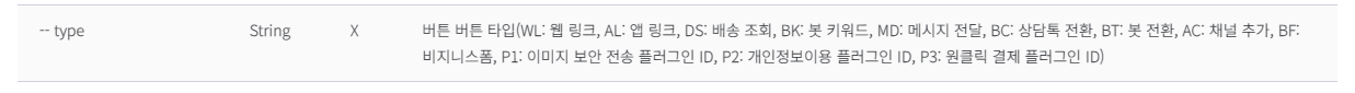 본 예제에서는 버튼 타입의 웹 링크를 테스트해보겠습니다. 각 타입별로 코드가 다르고 API 호출시 해당 코드를 입력해야 합니다.