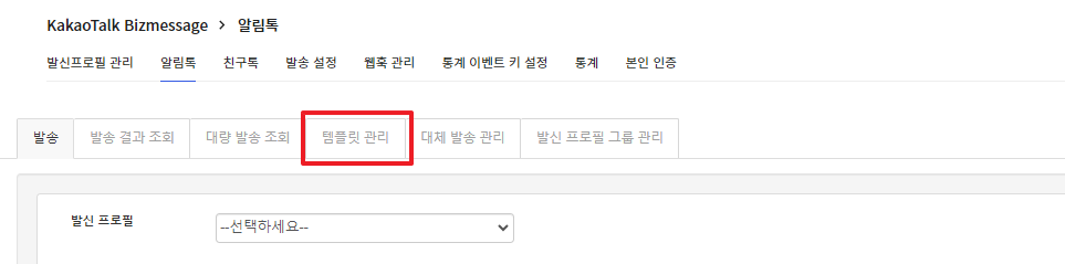 알림톡 전송시 사용될 템플릿이 등록되어야 합니다. NHN 접속 후 알림톡 - 템플릿 관리로 이동합니다.