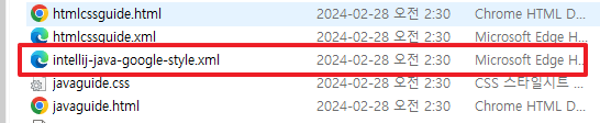 다운 받은 파일의 압축을 풀게 되면 intellij-java-google-style.xml 파일이 존재합니다.