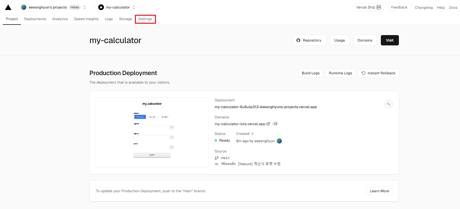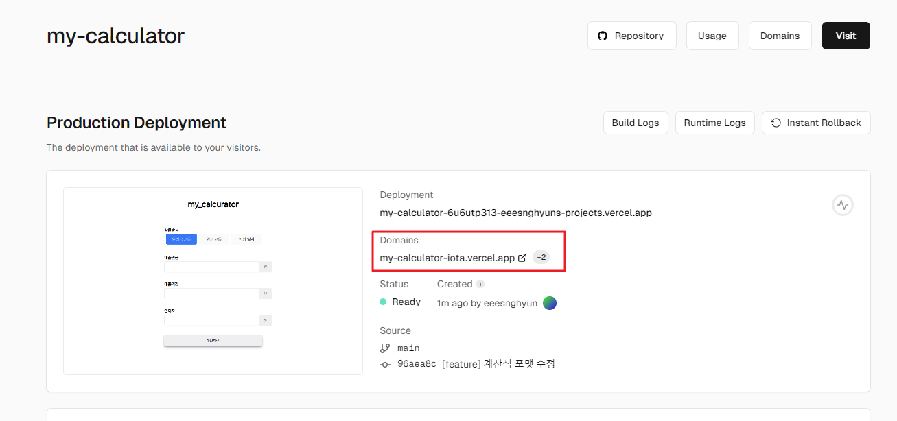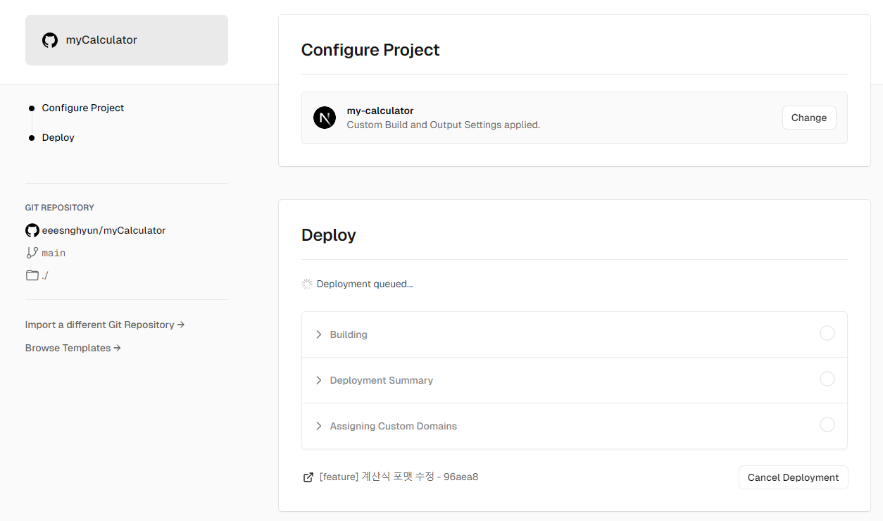 저장 후 Vercel을 확인해보면 상태를 실시간으로 체크합니다.