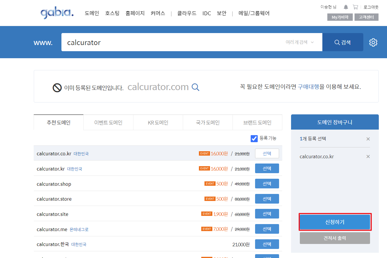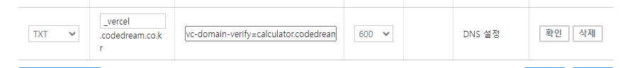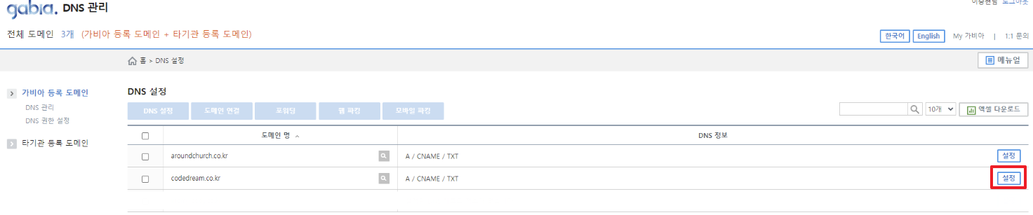 DNS 설정에서 구매한 도메인의 설정을 클릭합니다.