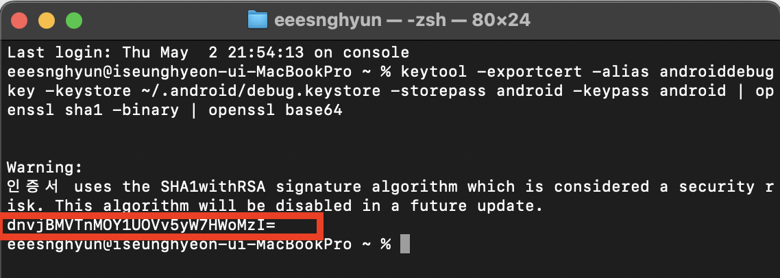 2. 키 해시 생성 명령어 입력
