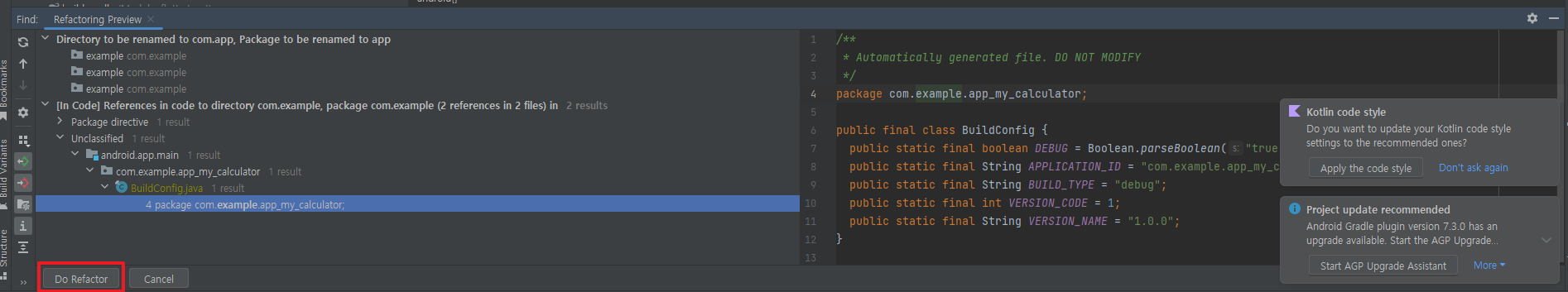 좌측 하단에 Do Refactor를 클릭합니다.