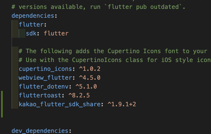 flutter에서 사용할 카카오 sdk를 추가합니다.