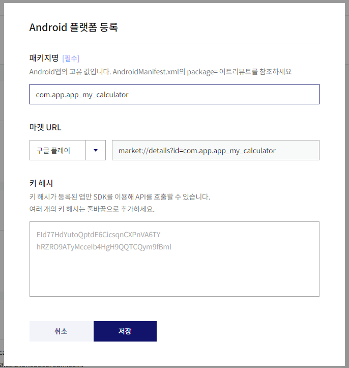 안드로이드 플랫폼은 키 해시를 따로 등록해주어야 합니다. 키 해시는 디버그 키 해시와 릴리즈 키 해시 두가지가 있으며, 배포시에는 릴리즈 키 해시까지 등록해주어야 합니다. 릴리즈 키 해시는 이후 앱 배포를 진행할 때 등록해주겠습니다. 디버그 키 해시 생성 및 등록 방법은 아래 더보기를 참고해주세요.