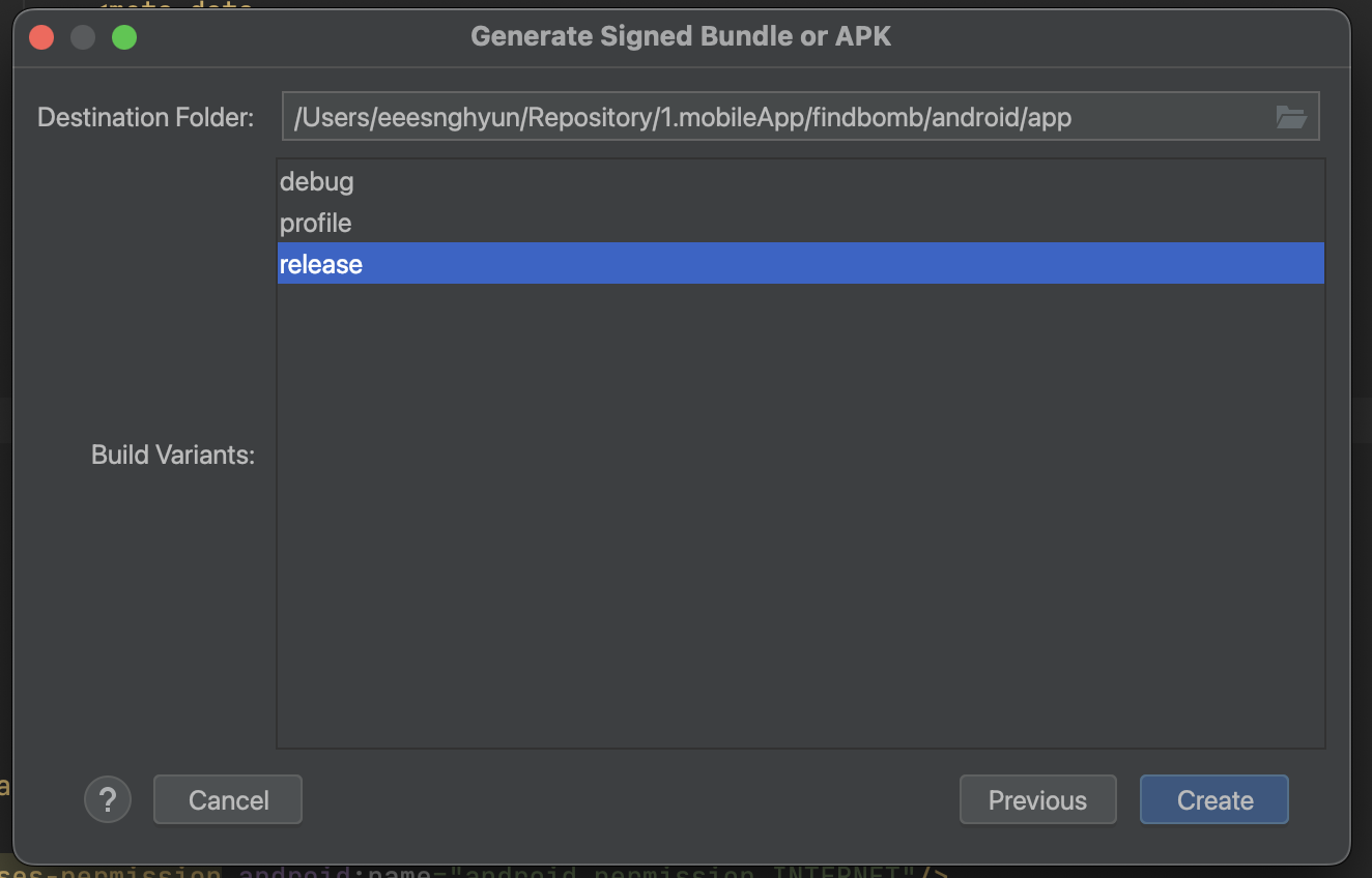 빌드 유형으로 release를 선택합니다.
