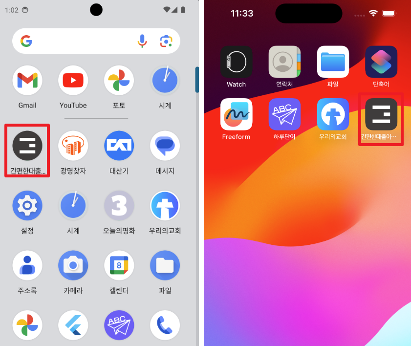 Android/iOS 모두 앱 아이콘이 변경된 것을 확인할 수 있습니다.