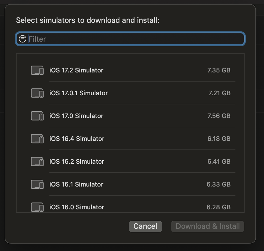 4. iOS 16.4 시뮬레이터를 설치합니다.