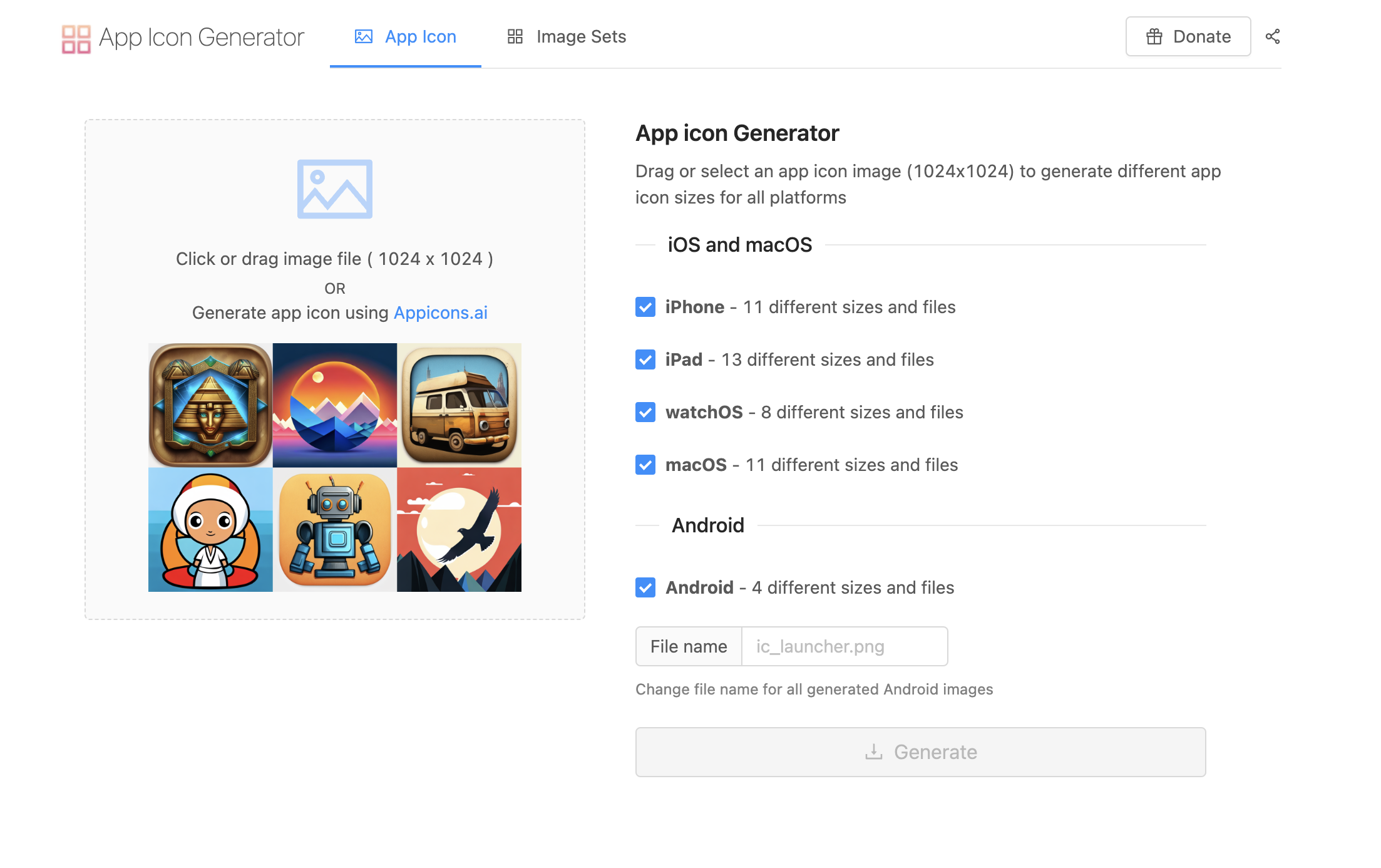 여기에 접속해 iOS에 수정할 앱 아이콘을 생성합니다.