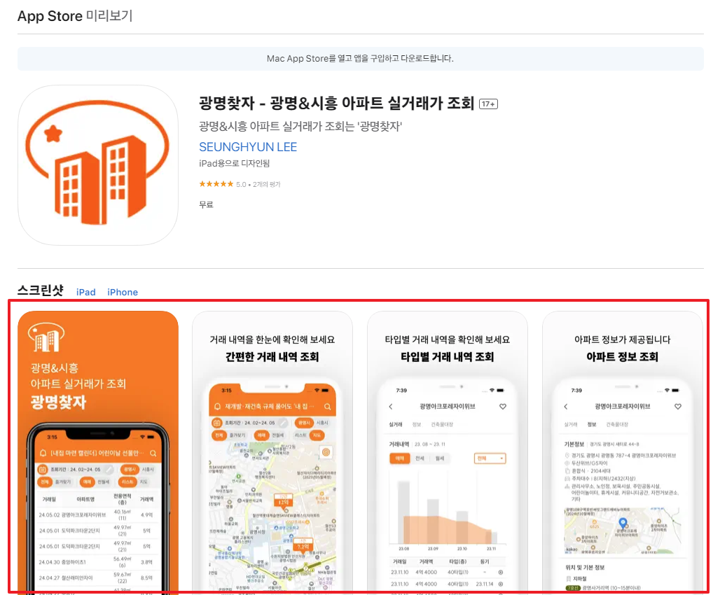 - iOS : (최소 3장의 이미지) 6.5 디스플레이 스크린샷, 5.5 디스플레이 스크린샷, 12.9 디스플레이 스크린샷, 12.9(iPad Pro) 디스플레이 스크린샷