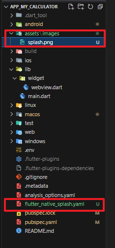 스플래쉬 화면에 사용될 이미지를 준비하고 프로젝트 루트 경로로 assets/images 폴더와 flutter_native_splash.yaml 파일을 추가합니다.