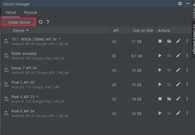 *애뮬레이터를 추가하는 방법은 더보기를 참고해 주세요
