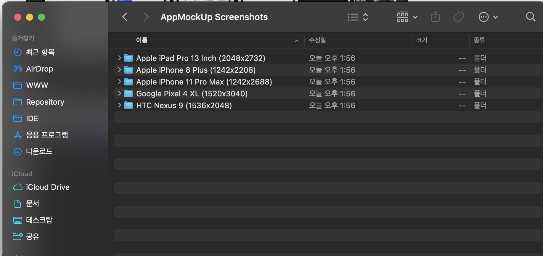 필요한 앱 스크린샷이 모두 준비되었습니다. 다음 포스팅에서는 준비된 이미지와 함께 스토어에 배포를 해보도록 하겠습니다.