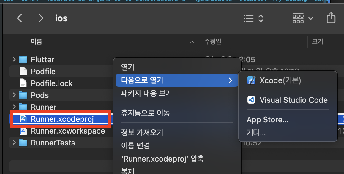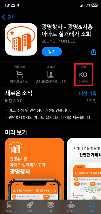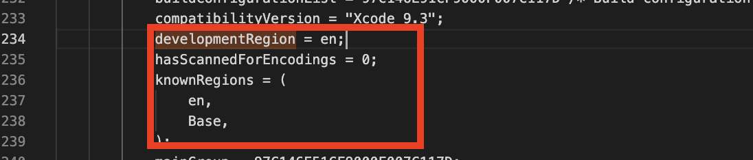 Framework/Flutter [Flutter]iOS 앱 기본 언어 정보 한글로 변경하기 - 반응형 앱 스토어에 아무런 설정없이 배포를 했을 때 기본 언어가 EN으로 설정되어 있게 됩니다. 아래와 같이 언어란에 KO를 표기하기 위해서 따로 설정이 필요합니다. 프로젝트 - iOS - Runner.xcodeproj 파일을 vscode로 엽니다. project.pbxproj 파일의 developmentRegion과 knowRegions의 en -> ko로 변경합니다. 반응형 공유하기 게시글 관리 3인칭시점 저작자표시 비영리 변경금지 (새창열림) 'Framework > Flutter' 카테고리의 다른 글 [Error]error: Sandbox: rsync.samba(22953) deny(1) file-write-create ... (0) 2024.08.26 [Flutter]무한 스크롤 구현하기 (0) 2024.06.21 [Error]"Uncaught TypeError: Cannot read property 'cancel' of undefined" (0) 2023.12.28 [Error]DT_TOOLCHAIN_DIR cannot be used to evaluate LIBRARY_SEARCH_PATHS, use TOOLCHAIN_DIR instead (0) 2023.12.04 [Flutter]아이콘 변경하기 (0) 2023.11.16 Contents 연관 포스팅 [Error]error: Sandbox: rsync.samba(22953) deny(1) file-write-create ... 2024. 8. 26. [Flutter]무한 스크롤 구현하기 2024. 6. 21. [Error]"Uncaught TypeError: Cannot read property 'cancel' of undefined" 2023. 12. 28. [Error]DT_TOOLCHAIN_DIR cannot be used to evaluate LIBRARY_SEARCH_PATHS, use TOOLCHAIN_DIR instead 2023. 12. 4. 댓글 0 + 이전 댓글 더보기