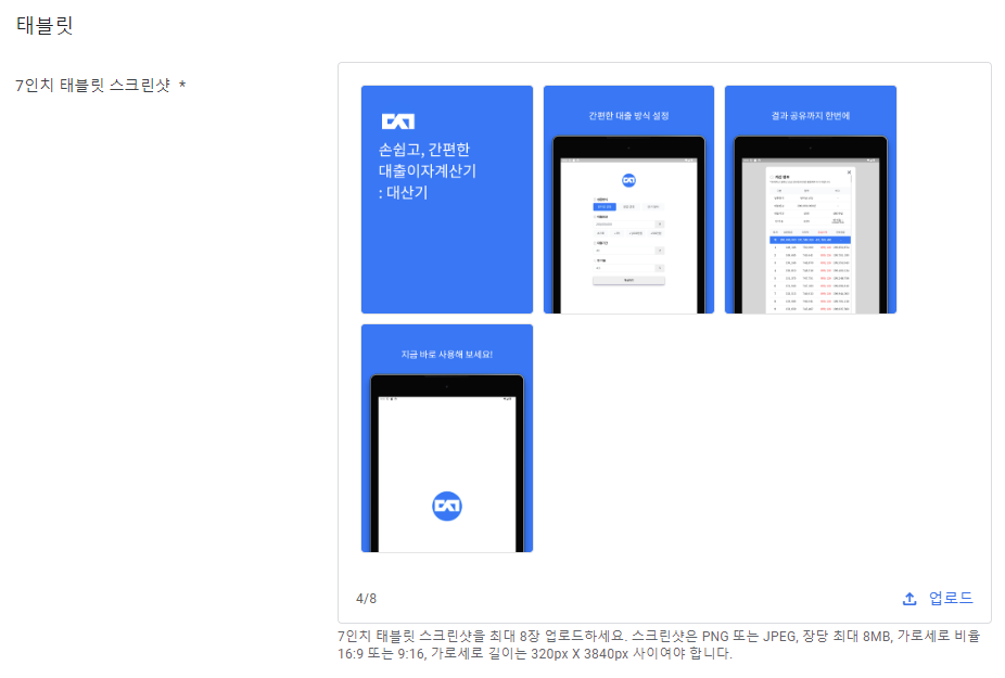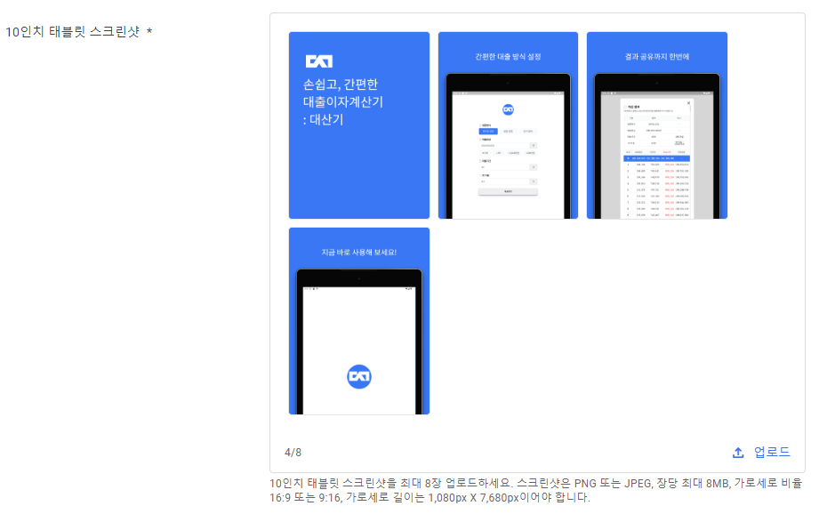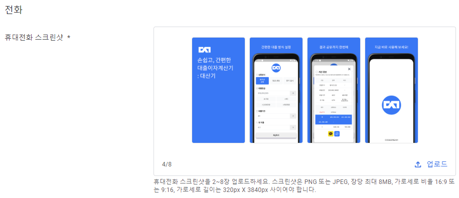 스토어에 소개될 앱 설명과 스크린샷을 저장합니다.