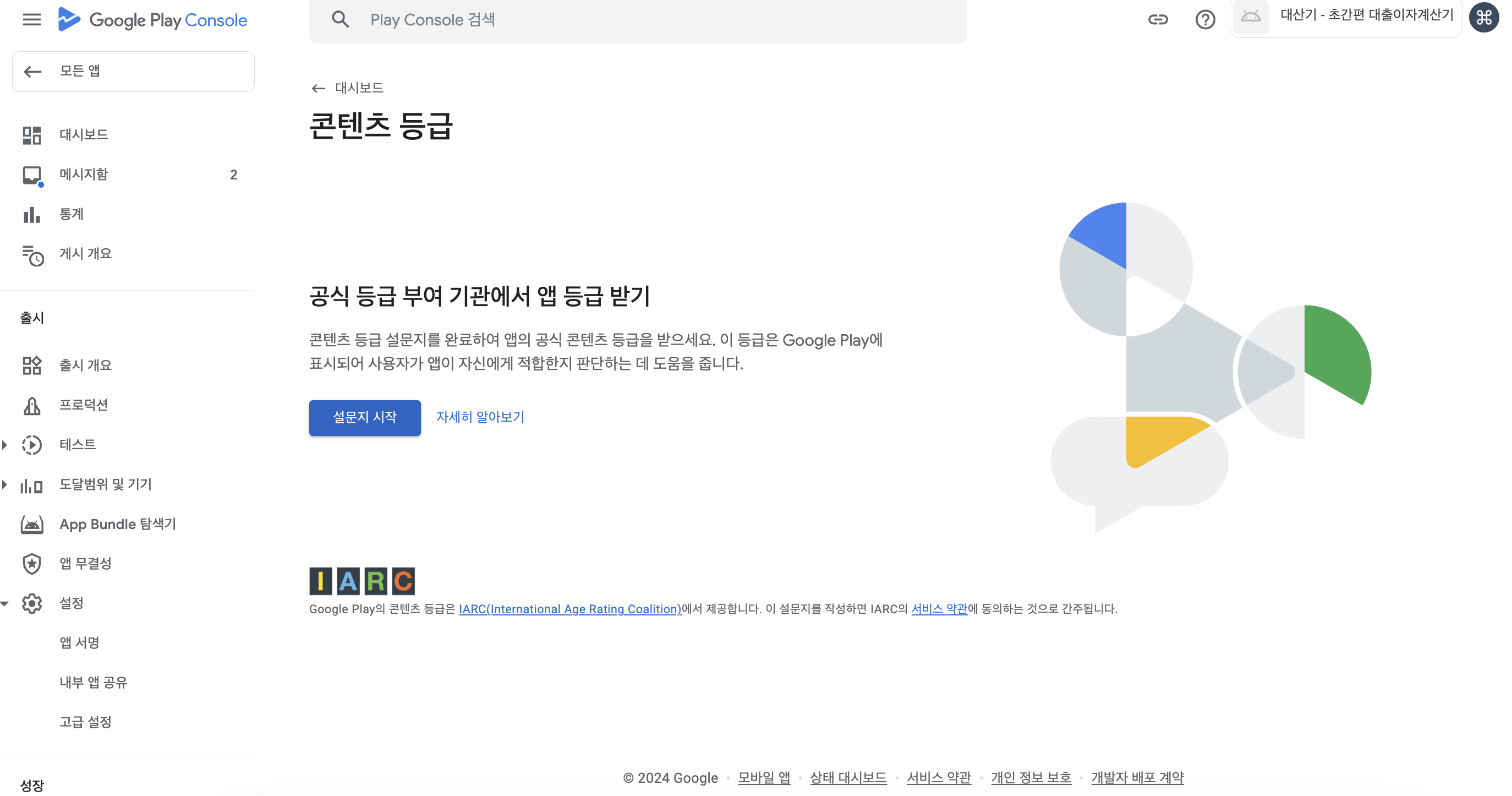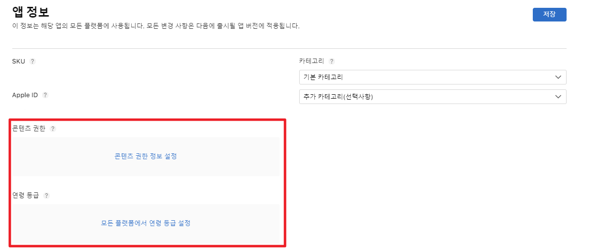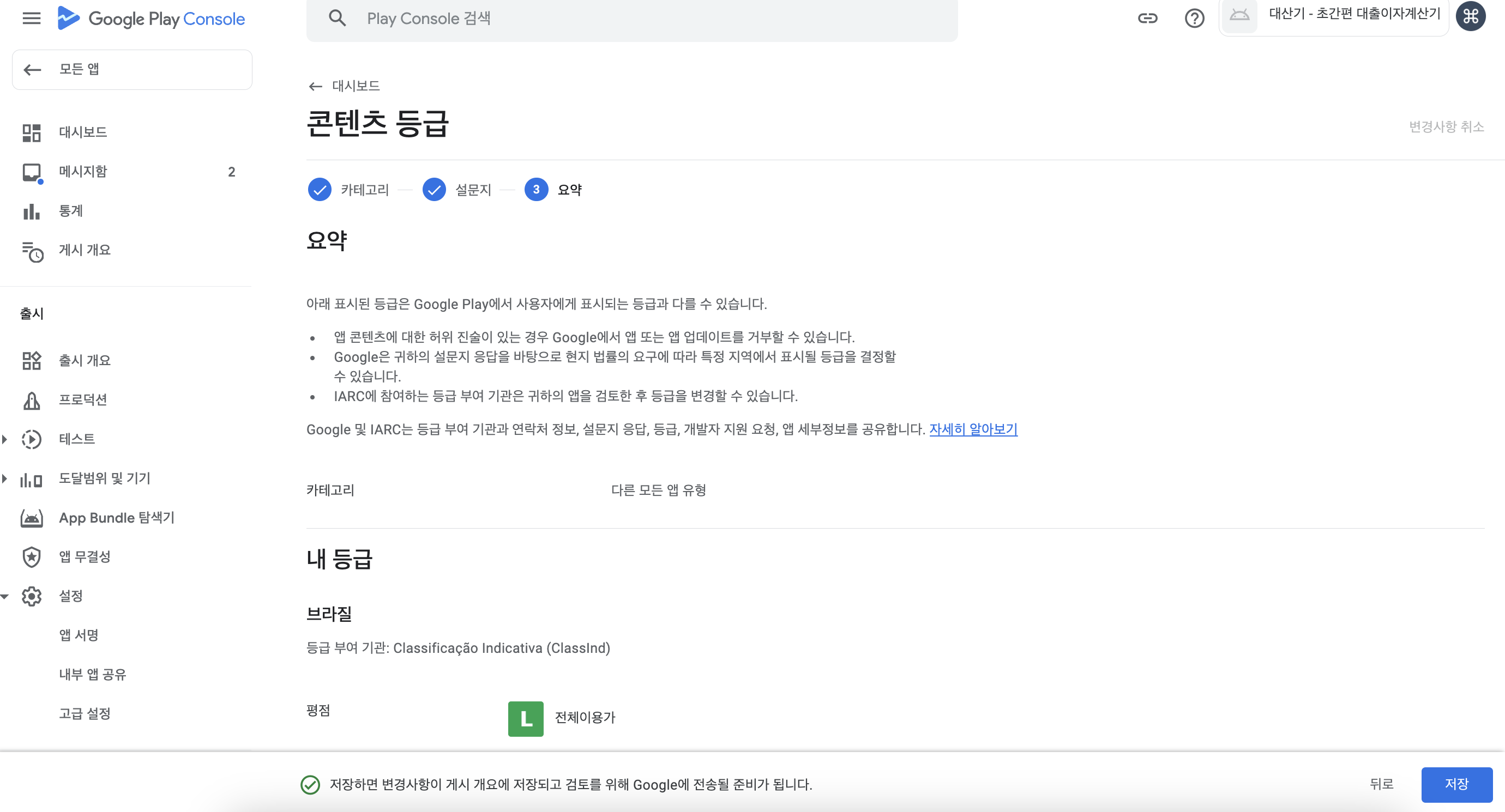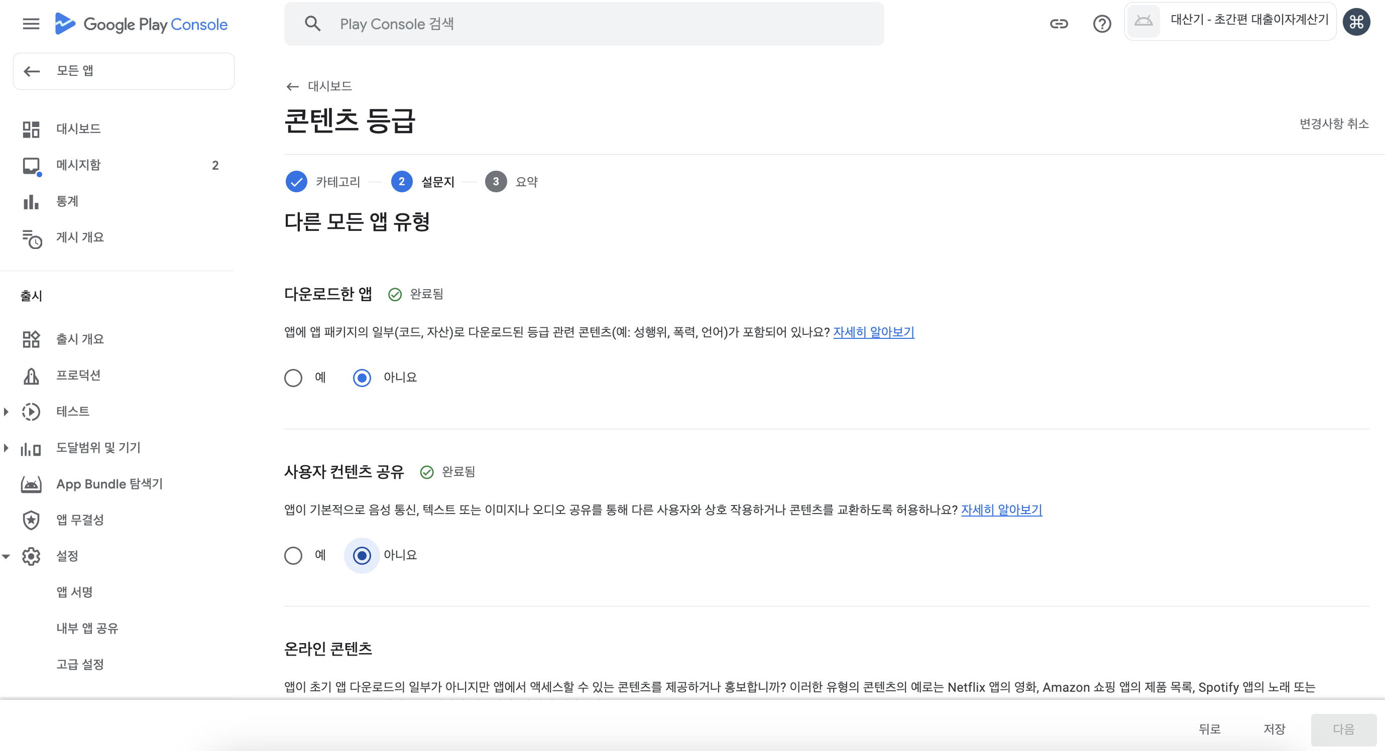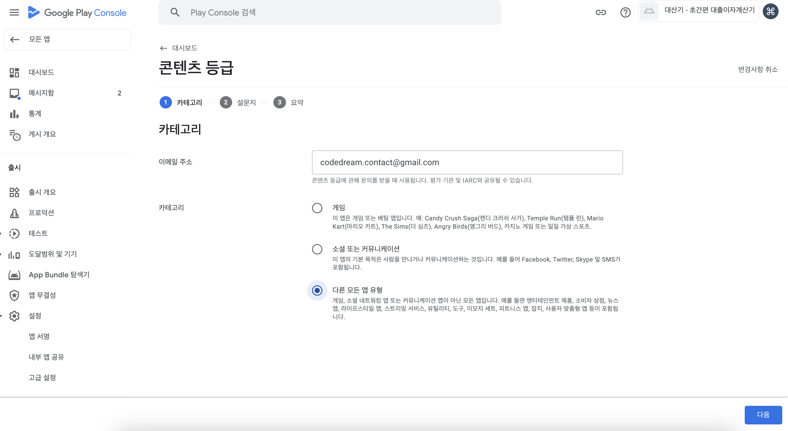 일반 정보에서 앱 카테고리와 콘텐츠 등급을 설정합니다.