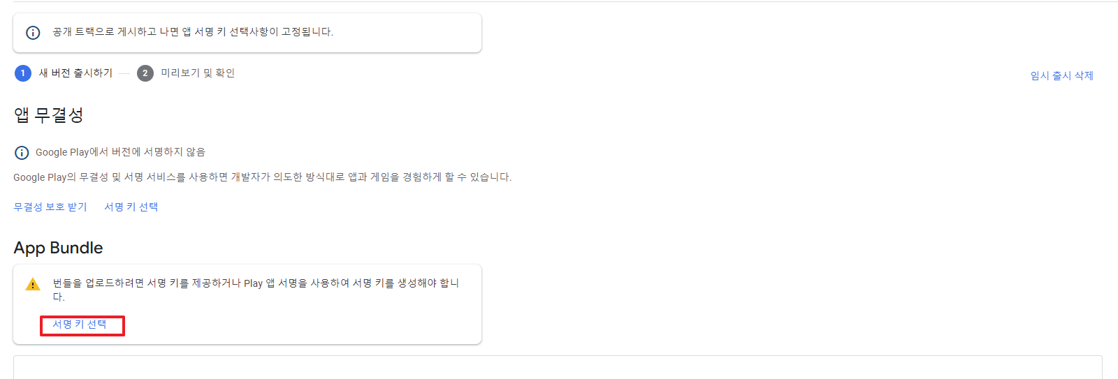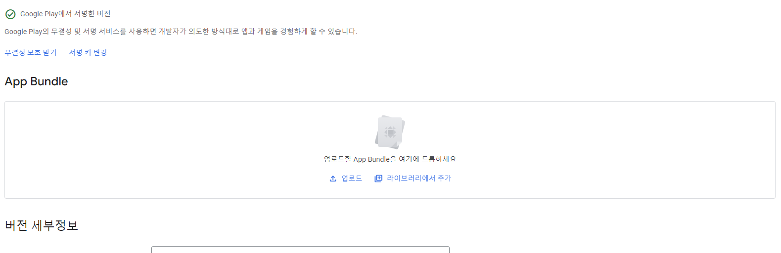 앱 번들은 안드로이드에서 빌드된 파일입니다. 이 때 사용될 서명 키를 생성합니다.(Google에서 생성한 키 사용)