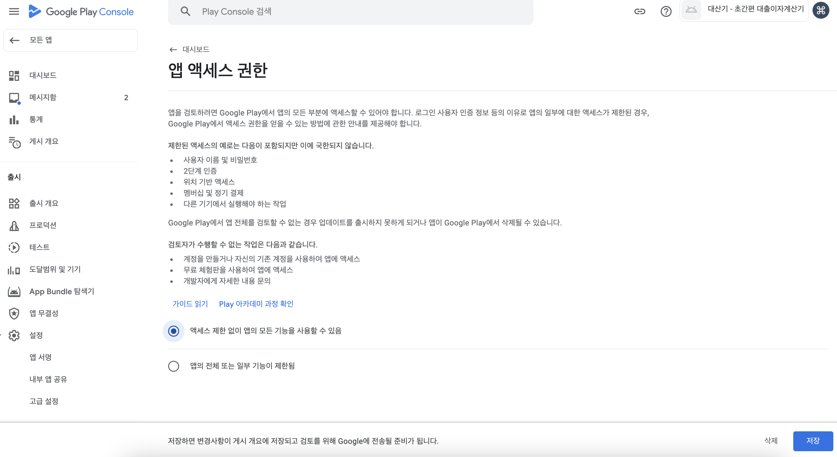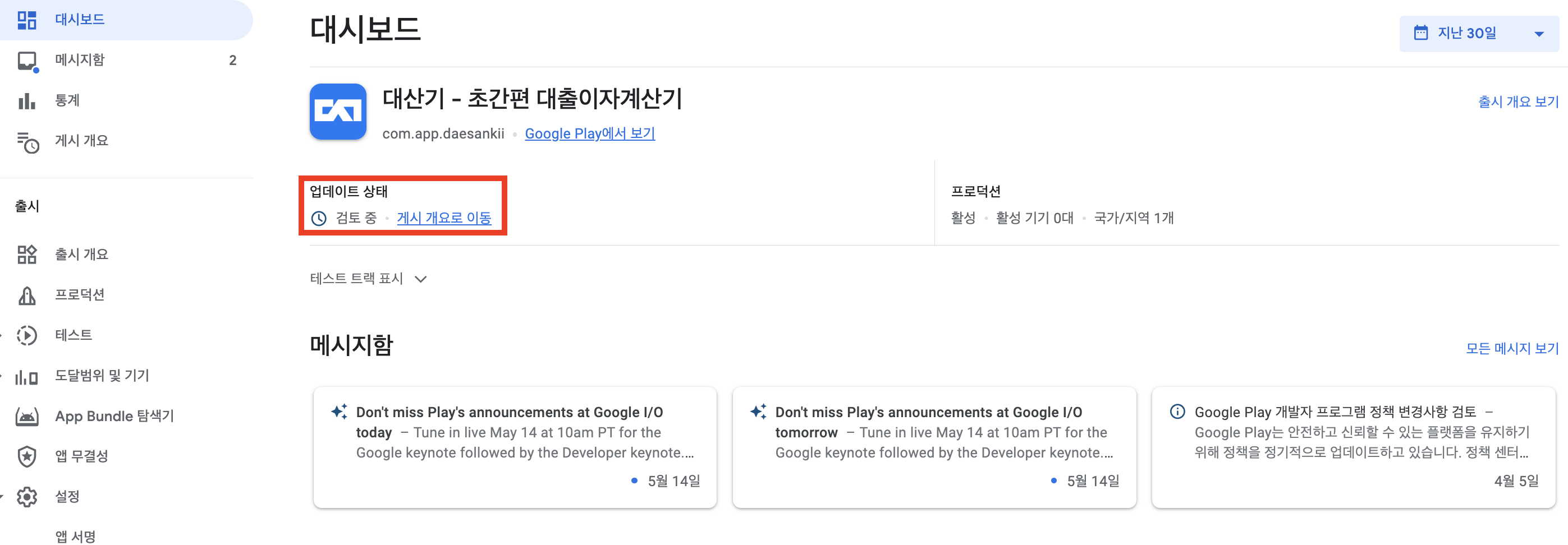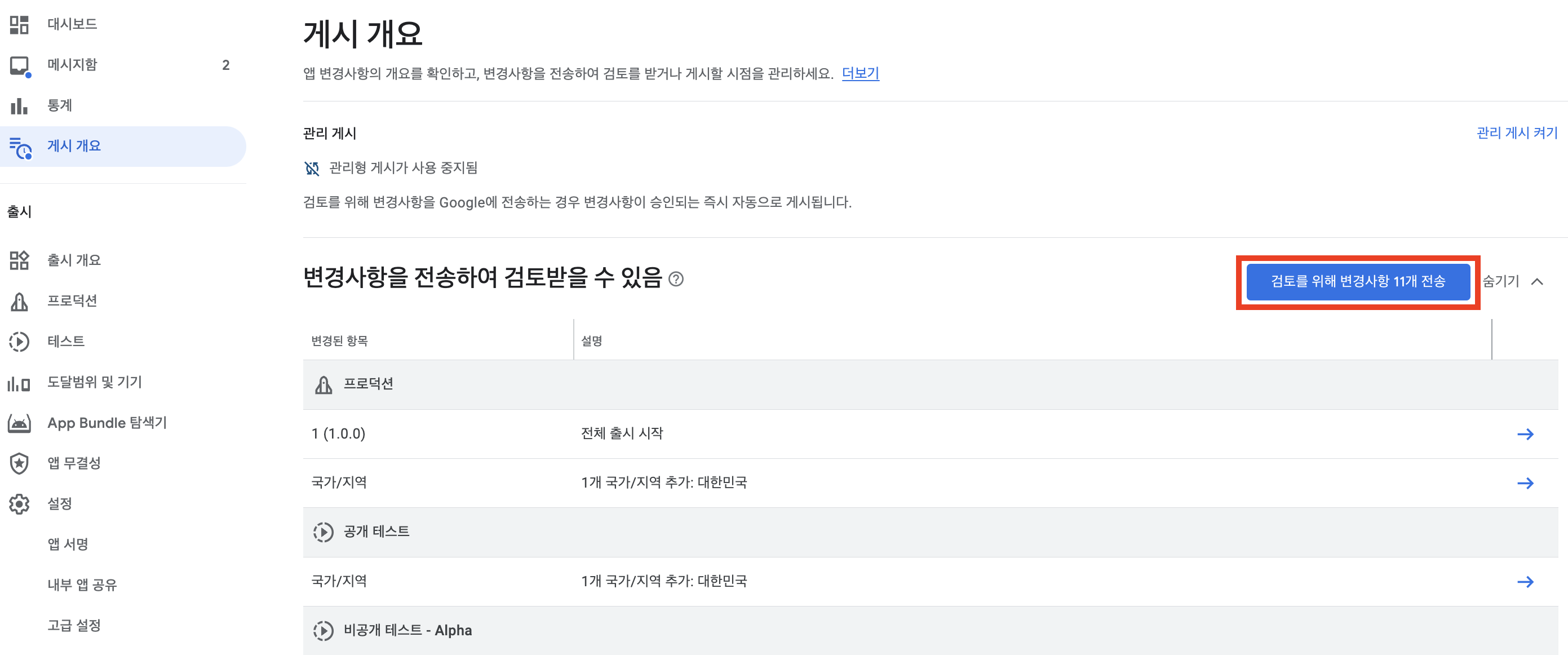 게시 개요에서 변경사항을 전송하면 앱 출시를 위한 검토에 들어가게 됩니다.